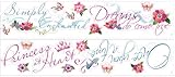 Bring the enchantment of the Disney Princess characters to your little girl's room with these beautiful phrases wall decals. Featuring sayings like "once upon a time" and "dreams do come true," these decals will be a wonderful addition to the room of your own little princess! And since RoomMates are completely reusable, these gorgeous stickers can be moved and repositioned as many times as you please. Pair these phrases with our Disney Princess decals, or a giant Princess like Tiana, Arial, or Cinderella (all sold separately) for a princess-filled room! Border Specs 2 sheets 9 x 40 Wall Decals and Size 15 pc Approx. Size Range from 2.6" wide x 2.3" high to 7.75" wide x 22" high - US Sales Only